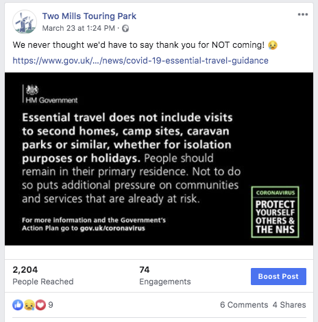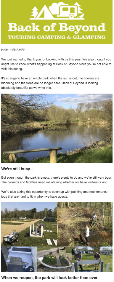 Marketing activity has been put on hold or is significantly reduced due to COVID-19 and the closure of touring parks .