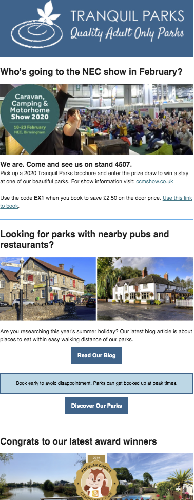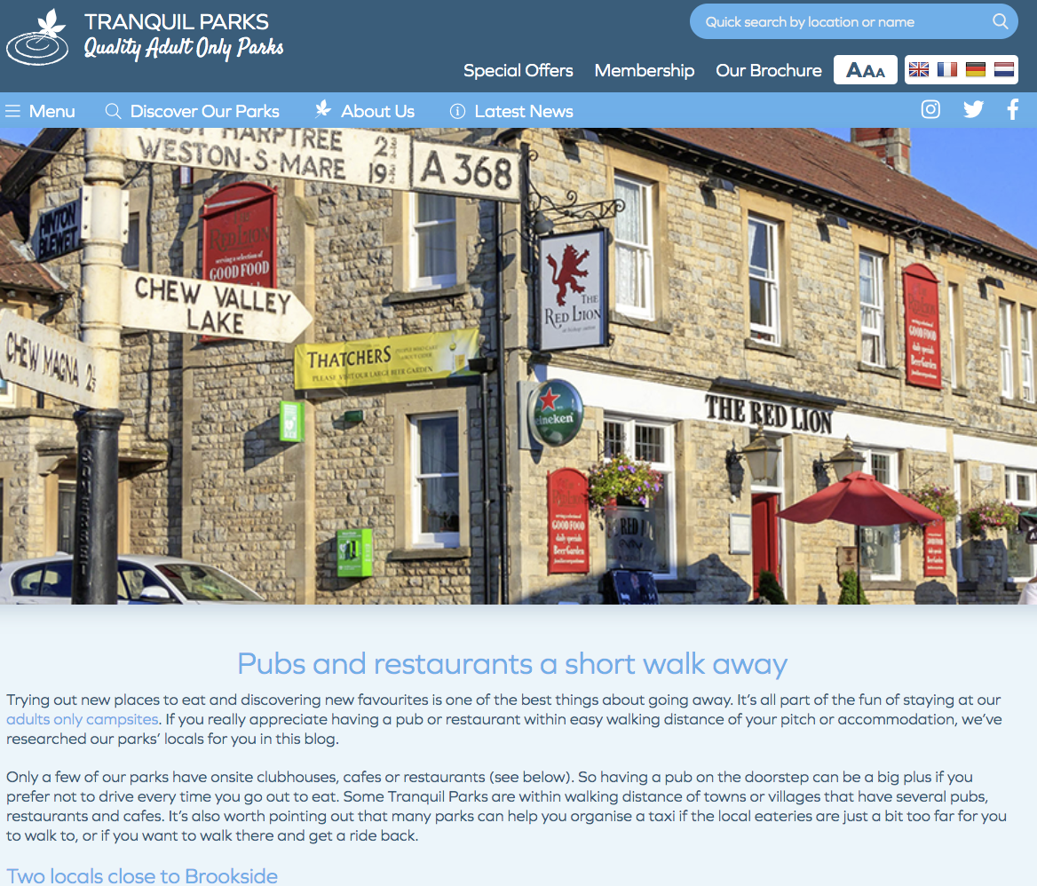 The marketing group for adult-only touring parks, founded in 2000 and currently representing 43 parks.